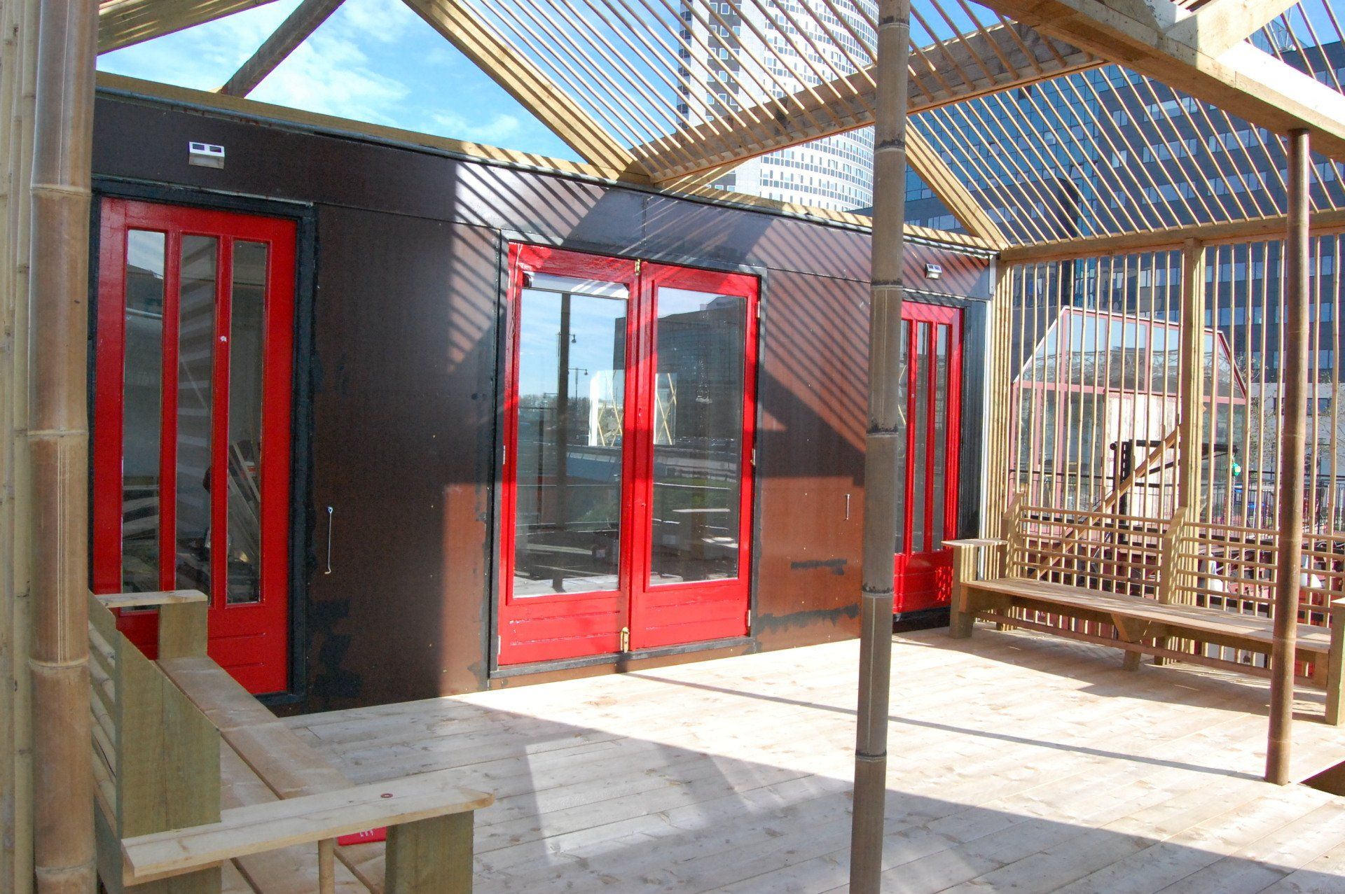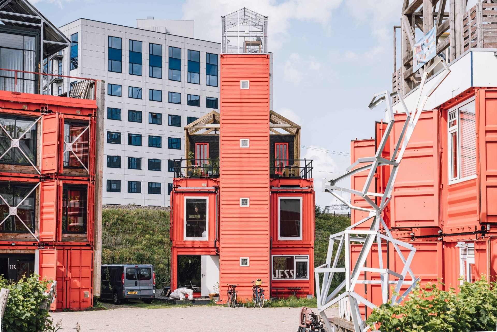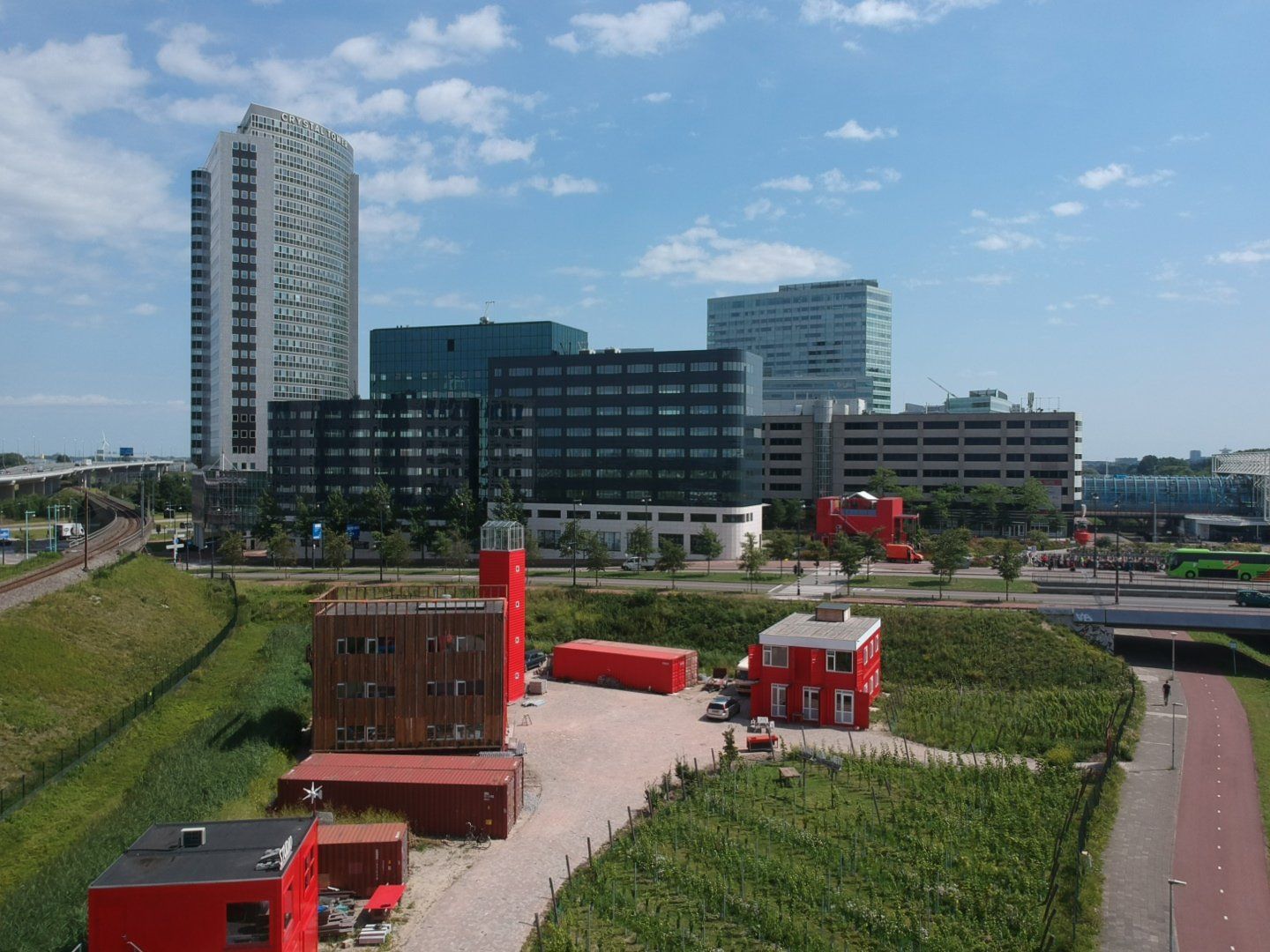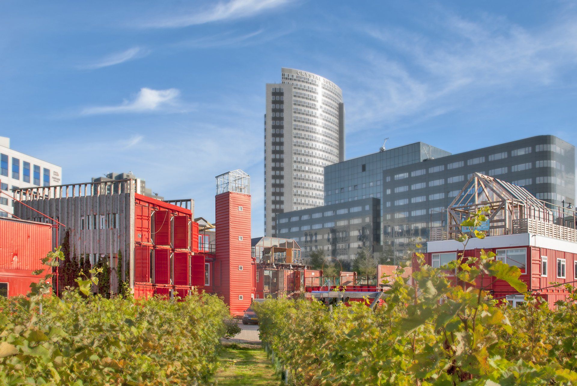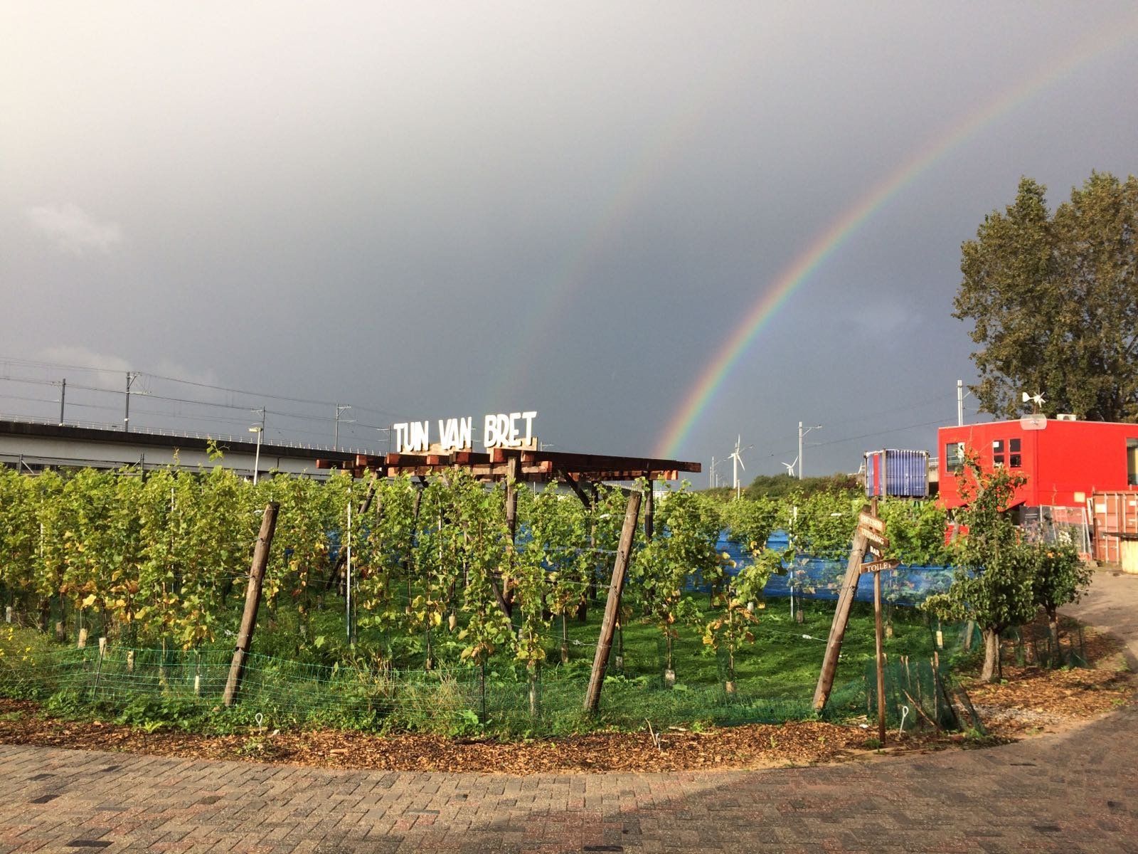 De Tuin van Bret is een klein dorpje in Sloterdijk Centrum, waar de containergebouwen rond het plein staan, met uitzicht op de wijngaard die een collectieve inspanning is van de deelnemers.